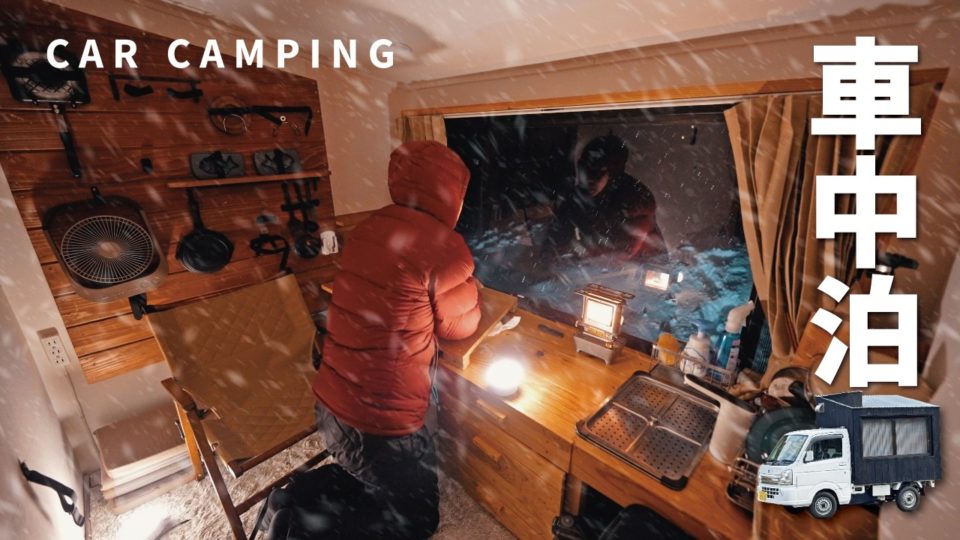 −4℃の爆弾低気圧で凍える夜。一晩で50cm積もる雪中車中泊。