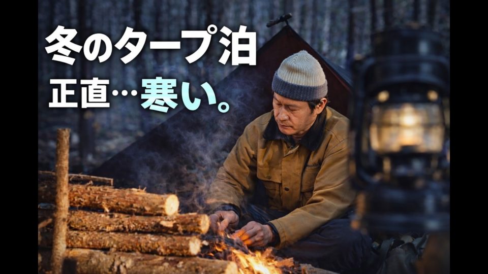 オイルスキンのコットンタープで眠る。寒いけど焚き火の恩恵で過ごす。